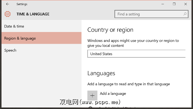 首先,在任务栏上的在搜索框中键入设置。到达后,点击时间和语言。 单击左侧菜单中的“区域和语言" ,然后在下拉菜单中更改为所需区域。