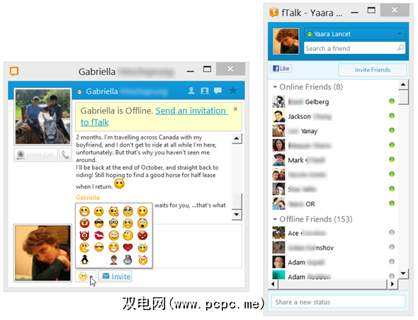 fTalk是专用于Facebook的Windows客户端,如果您错过了IM客户端的过去和动画表情符号,您会喜欢复古的fTalk体验。 fTalk是一个桌面客户端,但它也是一个Facebook应用程序,这意味着您首次登录时必须授予它对Facebook帐户的访问权限。完成后,您可以使用fTalk与在线朋友聊天,如果他们还与离线朋友一起使用fTalk。