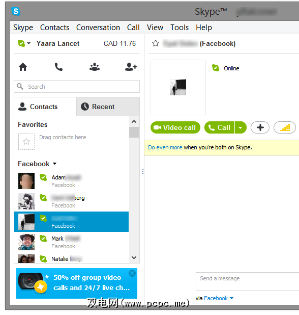 Skype,自从被Microsoft收购以来,它已经成为IP客户端上漂亮而精简的声音。无论您是否喜欢这些更改,其中之一都使其成为寻找Facebook聊天客户端的人的可行解决方案。适用于Windows和Mac的最新版本的Skype提供Facebook集成,可将您所有的Facebook朋友添加到您的Skype联系人列表中,让您可以通过Skype的界面与他们聊天和视频聊天。