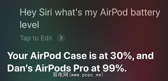 无论您使用哪种Apple设备,您都可以要求Siri为您检查一下AirPods电池。如果您不看设备屏幕,但可以使用AirPods本身访问Siri,则此功能特别有用。