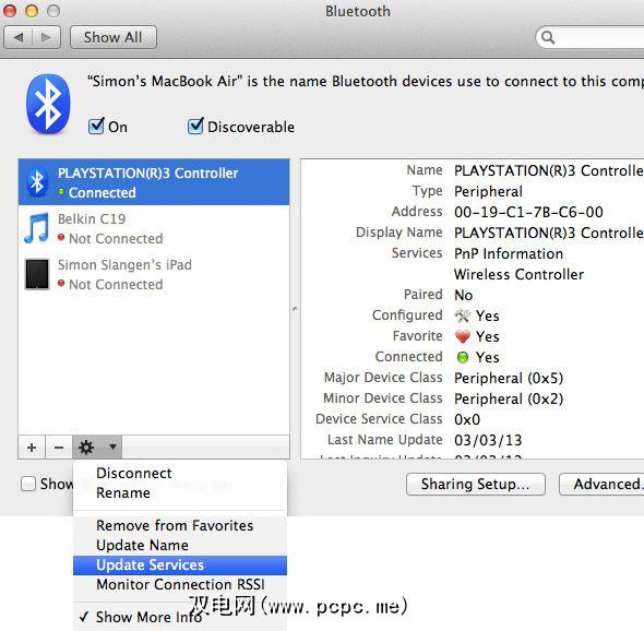 计算机完成设备配对后,您必须很快。否则,您将再次进入设备配对屏幕。选择PlayStation 3控制器后,打开屏幕左下方的齿轮菜单。首先,选择添加到收藏夹,然后选择更新服务。