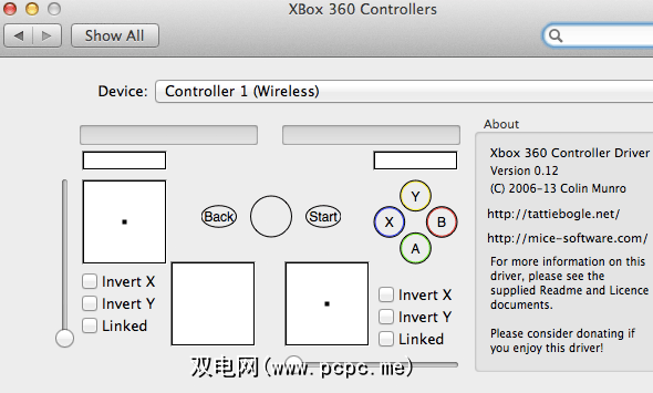 要在Mac上使用Xbox 360控制器,您首先需要安装驱动程序。 Tattiebogle的Xbox 360控制器驱动程序(可以免费下载)可以解决此问题,并提供了一个漂亮的界面来指定与Xbox 360控制器关联的控件。安装驱动程序后,只需在Mac的系统偏好设置中打开新添加的Xbox 360控制器选项卡。