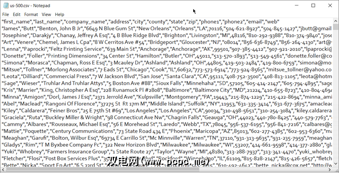 如您所见,名字和姓氏,他们工作的公司以及其他详细信息由逗号。该以逗号分隔的文本文件很容易在任何文本编辑器中创建。