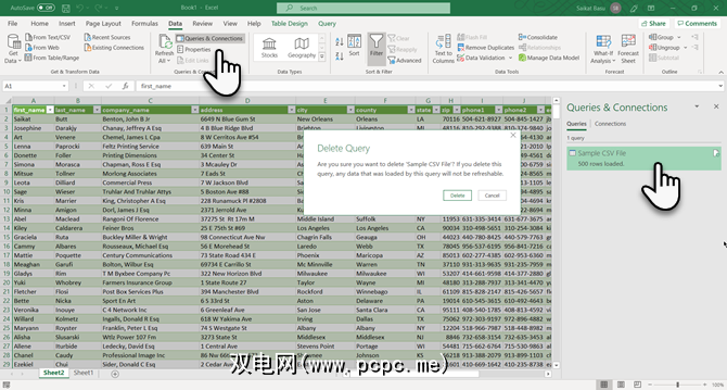 6。您可以通过转到数据>查询和连接以打开侧面的面板来取消此连接。