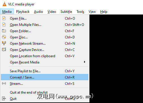 转换音频文件在VLC Media Player中,启动应用程序,然后打开媒体>转换/保存。