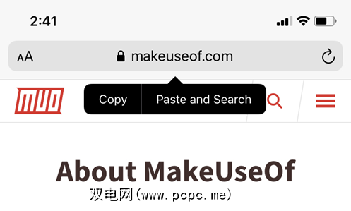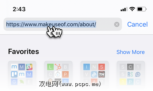 有两种方法可以快速从iPhone上Safari的地址栏中复制一个URL。下面的屏幕快照说明了这两个选项。