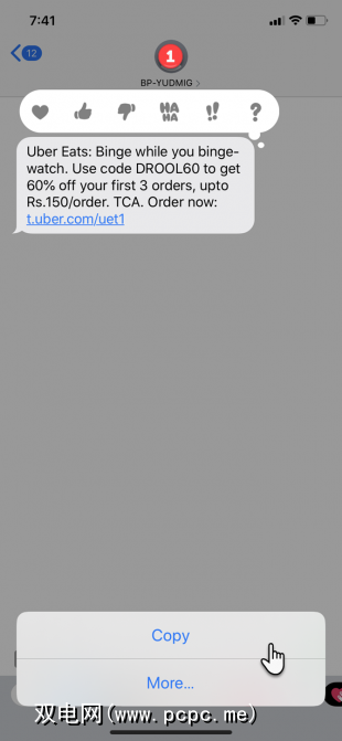根据消息的内容,将出现一个不同的“快速操作"菜单,同时触摸并按住在屏幕上。当有新信息可用时,iOS应用程序会动态更新其快速操作。这是三种类型: