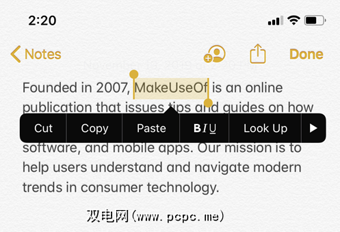 提示:您是否知道通过将键盘变成触控板可以更好地选择文本?有关说明,请参阅Apple在iPhone文本编辑上的支持页面。