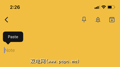 点击屏幕,然后弹出菜单显示复制和粘贴命令。这在iPhone上的所有应用中都是常见的。