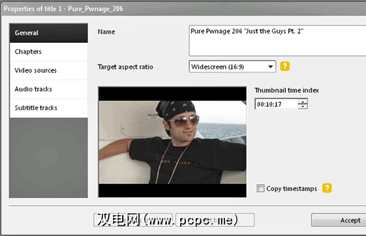 这是您要进行大量自定义的地方。您将要命名视频,并确保将其设置为正确的宽高比。在章节下,您可以指定每个章节的长度。对于长篇小说,可能需要五到十分钟,但对于短片而言,我将章节设置为两分钟。在“音频和视频源"下,您可能希望包括镜头的不同角度(如果有的话)或替代音轨(例如评论)。
