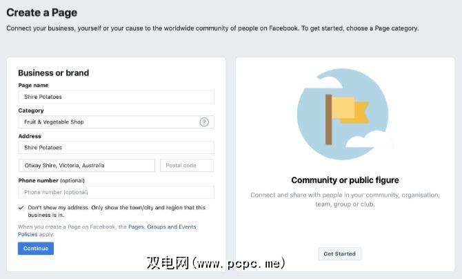 您选择的类别将决定下一步的工作。例如,如果您将页面归类为餐馆,则系统将邀请您填写街道地址和电话号码。您可以根据需要选择不显示地址。选择最能描述您的业务的类别,填写所有其他信息,然后单击继续。