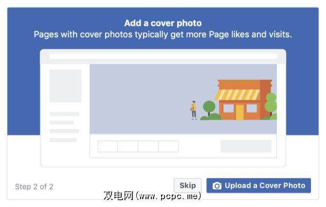 接下来,系统将邀请您添加个人资料图片。您可以查看我们的Facebook图片尺寸指南以获得确切的尺寸,然后点击上传个人资料图片。这是使用品牌徽标的好机会。如果您想稍后再执行此操作,请点击跳过。最后,系统会要求您添加一张封面照片,该照片可以用来告诉客户更多有关您的企业销售产品的信息。