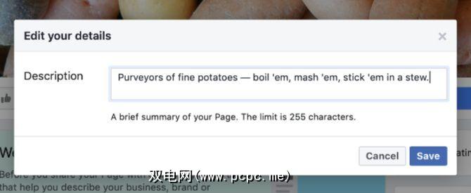 接下来,您需要添加简短说明。可以将这种方式告诉所有偶然发现您页面的人为什么在这里。点击添加简短描述,然后以255个字符以下的文字描述您的业务。完成此操作后,将邀请您点击编辑页面信息按钮添加更多信息。