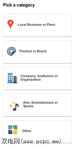 设置的下一部分涉及选择最能描述您的页面的类别。请注意,类别非常广泛-从本地企业,机构或组织,到艺术,娱乐和体育。如果这些都不适合,请选择 Other 。