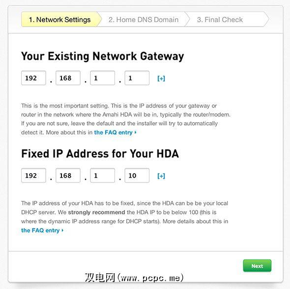 有时会提示您输入“安装代码"。要获取安装代码,请访问Amahi.org并注册一个帐户。系统将要求您提供网络网关IP(路由器的地址,通常为192.168.0.1)和HDA的固定内部IP地址(即要在其上安装Amahi的服务器)。您应在路由器内设置一个固定地址,具体过程因制造商而异,但简单的搜索即可为您提供帮助。 Amahi建议您关闭路由器上的DHCP(自动IP分配),但这并非总是必要的,在我的情况下,我将其保留为正常。