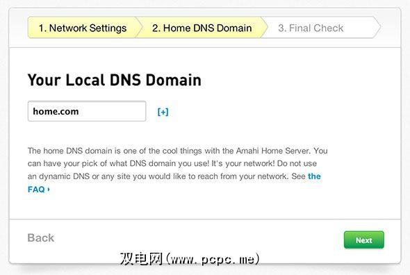 接下来,系统将要求您设置本地DNS域,可以在网络内部内部使用该域来访问服务器。选择简短,独特且与您要访问的任何网站都不相同的内容。我选择了“ server.hda",但可以自己制作。
