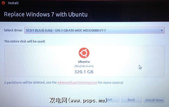 当被问到您如何安装Ubuntu时(既可以与现有版本一起安装)操作系统,请替换现有的操作系统或自定义)。由于您的服务器在大多数情况下都将留在自己的设备上,因此双重引导毫无意义。我选择将整个可用的320GB用于服务器,并且为简单起见,仅创建了一个分区。默认情况下,Ubuntu会将这个分区格式化为EXT4,这是Linux本地文件系统。不必担心,Amahi喜欢EXT4。