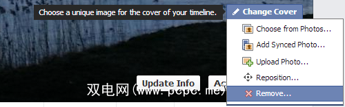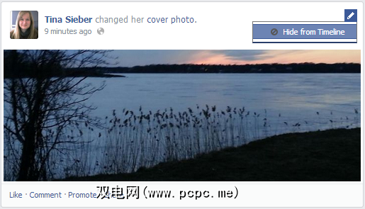 点击保存更改按钮后,Facebook会更新您的时间轴,并向公众宣布您已更改封面照片。默认情况下,此消息是公开的,无论其他隐私设置如何,该消息都会显示在朋友的新闻源中。但是,当您单击状态更新右上方的 Edit或Remove 按钮时,可以将其隐藏在时间轴中。