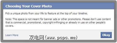 这将触发一个弹出窗口,其中介绍了更多内容关于封面照片。基本上,Facebook希望您使用独特的个人照片。