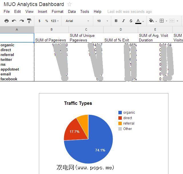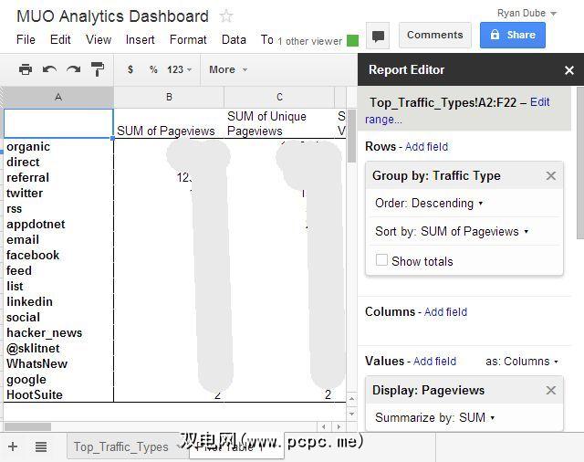 现在,来自Google Analytics(分析)的数据在Google Spreadsheets中,因此您无所不能。您可以将数据移动到其他工作表上,对它们进行各种计算,并创建很棒的数据透视图来组织数据,从而揭示很多信息,否则这些信息就不会那么清晰了。