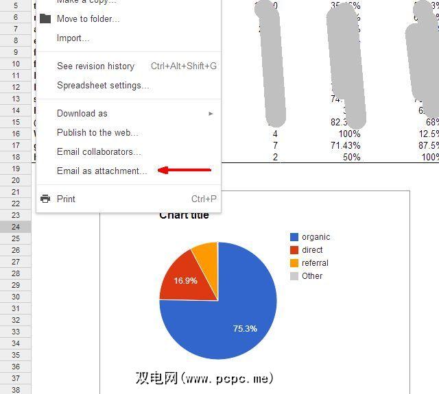 您只需点击几下即可转到Google Spreadsheet中的“文件",然后选择“作为附件发送电子邮件..."
