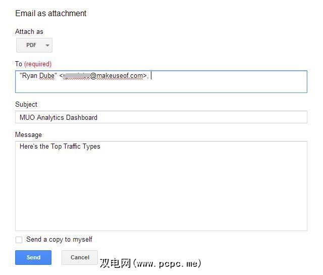 我个人认为PDF报告看起来很酷,因此我将使用报告的PDF格式,添加报告应转到的所有收件人,然后点击发送。而已!您的自动报告完成了。