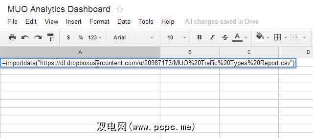 请记住,您在Google Analytics(分析)中指定的原始电子邮件主题行将始终保持不变,因此附件将始终相同,并且Dropbox中IFTTT附加的CSV文件将被命名为相同。因此,创建此ImportData函数后,每次打开此Google Spreadsheet都将始终起作用。
