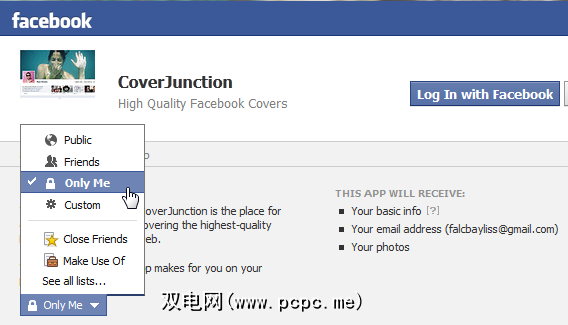 似乎所有的Timeline封面应用程序都带有某种免责声明,而CoverJunction则没有不同。要从CoverJunction获取封面,您不需要“点赞",但需要向该应用授予您Facebook帐户的访问权限,以便添加时间轴封面。有几种方法可以使此几乎无害,我将向您确切演示如何做到这一点。