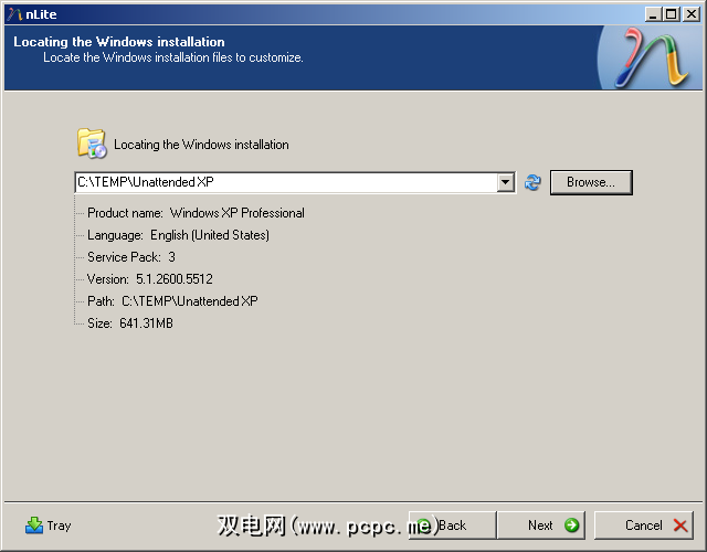 文件复制完成后,nLite将检测安装CD上的Windows XP版本。如果显示安装中包含Service Pack 3,则无需下载Service Pack。否则,您可以在此处下载Service Pack。继续下一步。