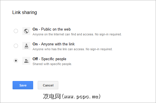 您可以设置网络上的公共或任何人之间的链接共享链接。然后在可以查看和可以编辑之间进行选择。