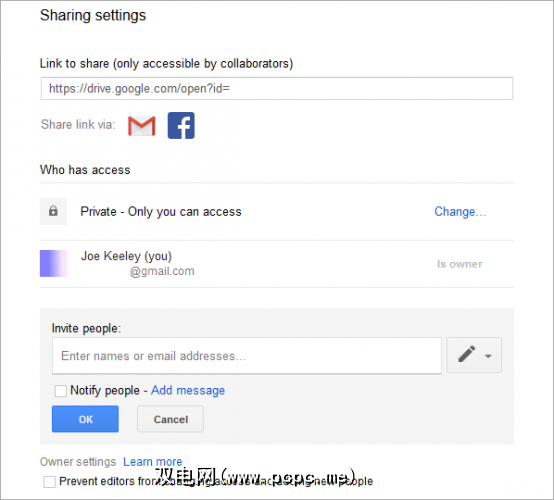 最后,单击复制链接,然后将该URL共享到谁。您还可以单击 Facebook 或 Twitter 直接与这些社交媒体网站共享。