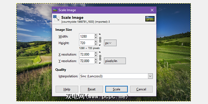 如果源图像的长宽比与屏幕相同,那么您要做的就是调整大小。要在GIMP中调整大小,请执行以下操作:
