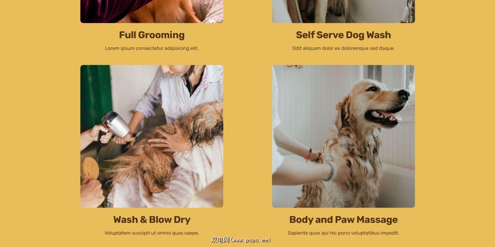 该网站提供四项服务:全面梳理、自助洗狗、洗和吹干以及身体和爪子按摩。