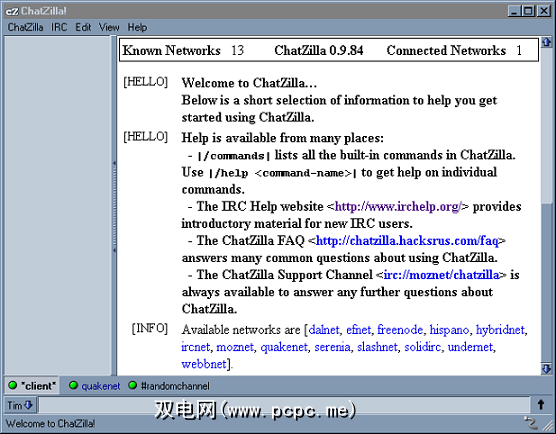 将频道视为一个独立的“一间较大的IRC服务器上的“会议室",通常专门针对某个主题或组织。您自己的里程可能会有所不同。要创建和访问IRC,您需要一个IRC客户端(如此列表中的任何客户端)。我将使用适用于Firefox的ChatZilla扩展。