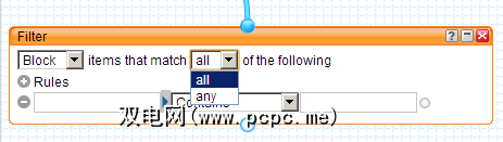 要设置仅输出带有特定单词的RSS条目的管道,只需将“过滤器"模块左上方的“阻止"一词更改为“允许"即可。