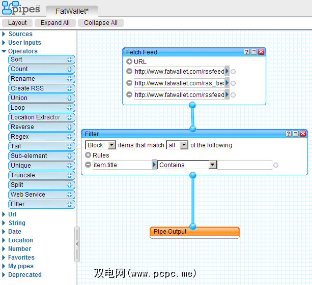 创建自己的管道无需花费很多精力。但是,如果我们的教程不能满足您对原始信息的需求,我强烈建议您查看Yahoo的官方Pipes教程或Dawn Foster的出色的教程系列。