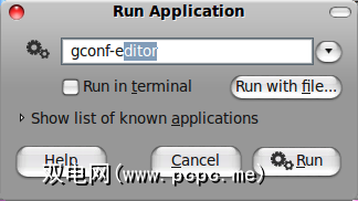 按Alt + F2,在出现的对话框中键入 gconf-editor ,然后按Enter。