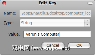 您在那里的同时,也可以修改名称。例如,如果要将名称从“计算机"更改为“ Varun的计算机",则只需双击computer_icon_name,选择String作为类型,然后键入您要为其赋予的名称。