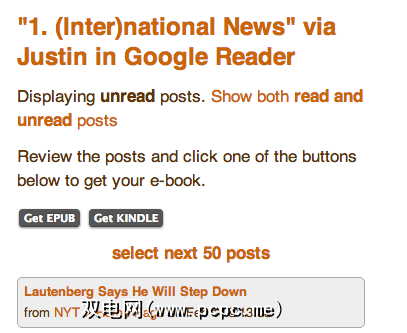 就像我之前所说的,此工具不只是适用于Google阅读器用户。您可以通过将任何RSS feed粘贴到NewsToEbook的框中来直接下载。