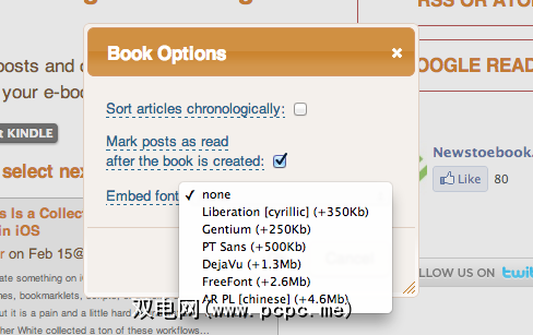 选择格式时,系统会提供一些选项。您可以在Google Reader中将下载的每个项目标记为“ Read ",这是我喜欢的一项功能(Calibre不提供此功能)。