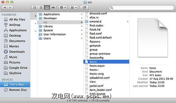 在Mac OS X 10.6或更早版本上的用户将在 / private / etc / hosts 位置。