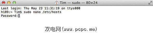 除非另有说明,否则本教程适用于Mac OS X Lion 10.7和更高版本。为了更改主机文件,您应该首先打开终端应用程序。在提示符下键入以下内容: