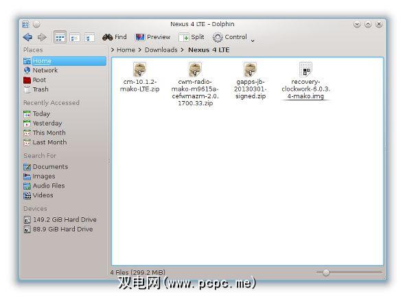 CyanogenMod的非正式版本,其中包含LTE专用的樱桃小穗。只需转到该主题的第一篇文章,然后展开“下载"部分即可。我建议下载最新的稳定版本,而不是每晚下载。 支持LTE的软件无线电。链接中所有未禁用LTE的广播都可以使用,但是我建议您使用.33广播。 Google Nexus 4的ClockworkMod Recovery最新版本。我建议您使用常规恢复而不是触摸恢复,因为它可以防止您意外触摸不需要的选项。 Google Apps软件包。您确实想要Gmail,Play商店等,对吗?获取相应版本的CyanogenMod的版本(在撰写本文时为10.1) 除了这些文件,您还需要将Android Tools安装到计算机上。这些工具提供了诸如adb和fastboot之类的实用程序,您需要它们才能使计算机与手机进行通信。在Linux系统信息库中搜索Android工具应该很容易,而Windows和Mac OS X用户则应查找有关如何查找,安装和使用工具的文档。以下说明适用于Linux用户,但是Windows和Mac OS X命令很可能与这些命令非常相似。如果您无法在操作系统中查找这些工具的文档或无法使用它们,则可能需要重新考虑如何将手机弄乱。如果一切正确,一切都会顺利进行。做错了什么,您会发现自己熟悉新的镇纸。