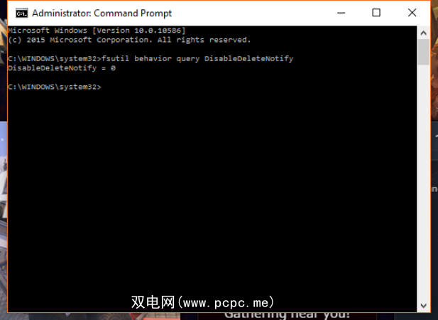 要启用它,请使用相同的命令提示符(Admin)并输入以下内容: fsutil行为设置为DisableDeleteNotify 0. < / code>如果出于某些原因需要关闭Trim,请输入 fsutil行为集DisableDeleteNotify 1。