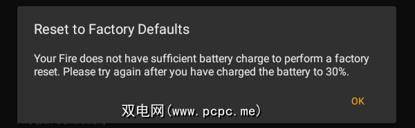 注意::您的Kindle需要至少30%的电量,然后才能启动工厂重置。