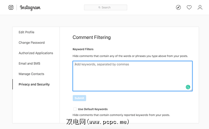 要在计算机上执行此操作,请启动Instagram网络应用并打开设置。点击隐私和设置,然后点击编辑评论设置。