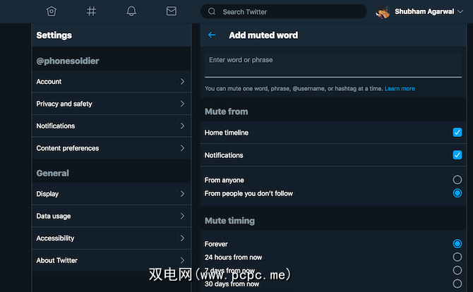 在Twitter上,当发现带有特定词组,单词,内容的推文时,您可以屏蔽它们不显示在时间轴上或通知中。甚至是标签。