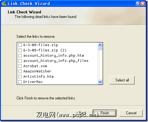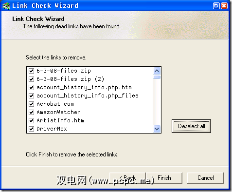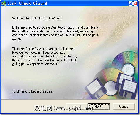 如果您不想获取整个资源工具包,则可以下载364KB ChkLnks.exe文件,从此处http://www.computerperformance.co.uk/ScriptsGuy/chklnks.zip自己压缩。该程序无需安装。您将看到下面的屏幕,称为“链接检查向导"