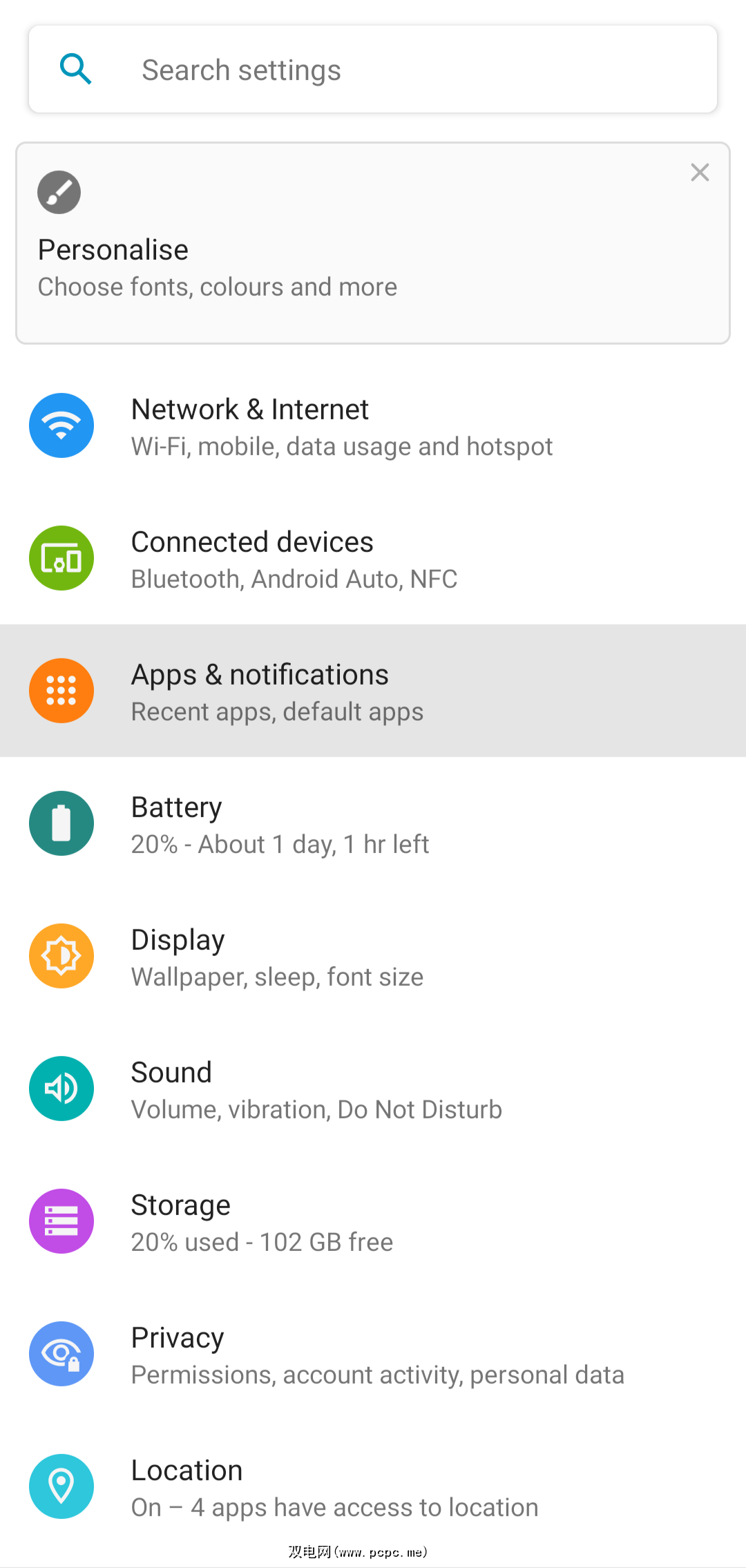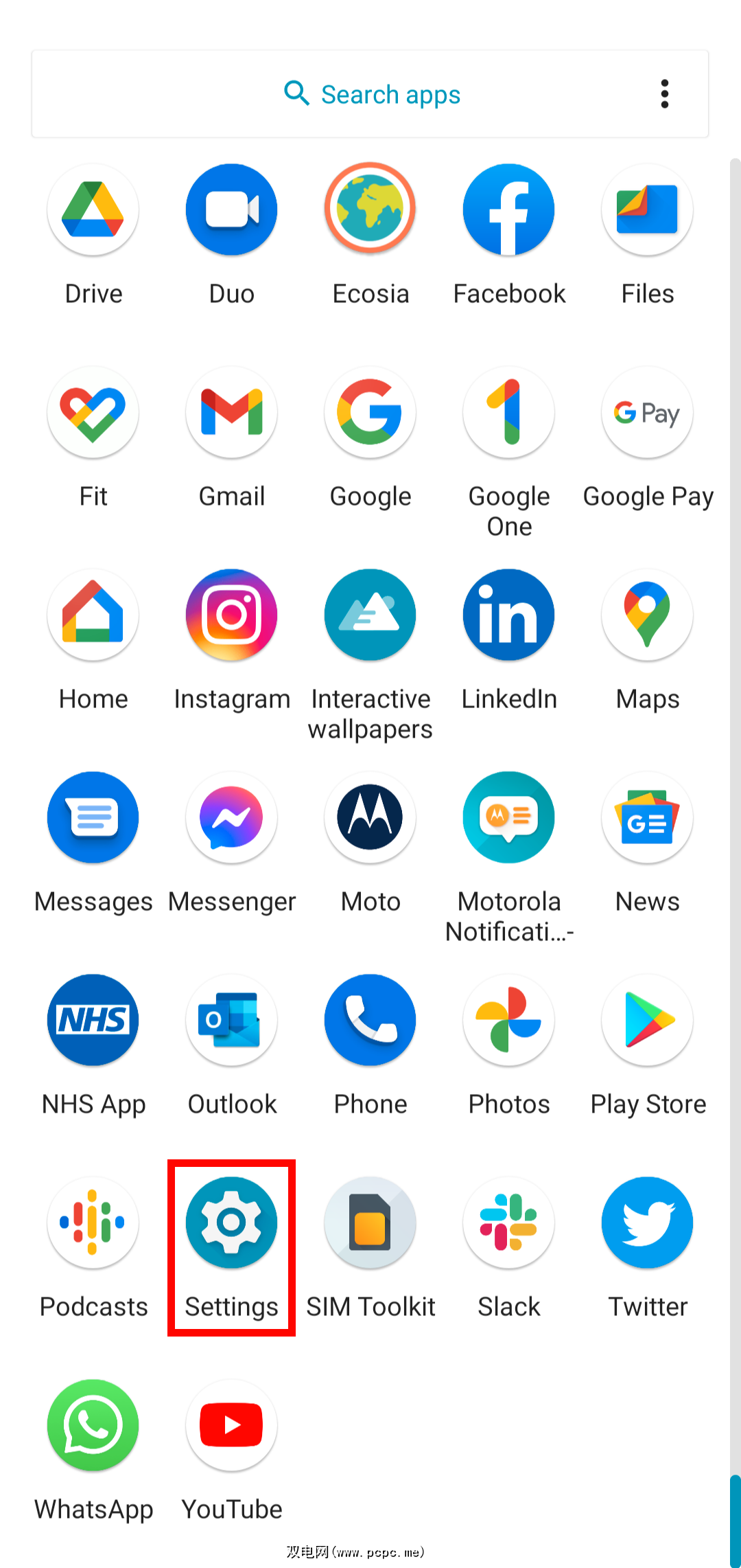 首先,点击您的设置图标,然后从菜单中选择应用程序和通知。如果您的设备上看起来有所不同,只需转到处理您手机应用程序的选项卡即可。