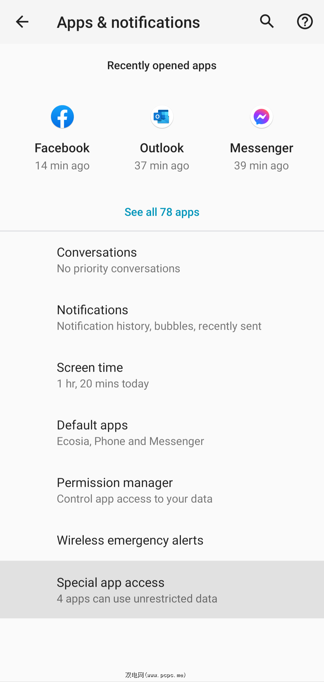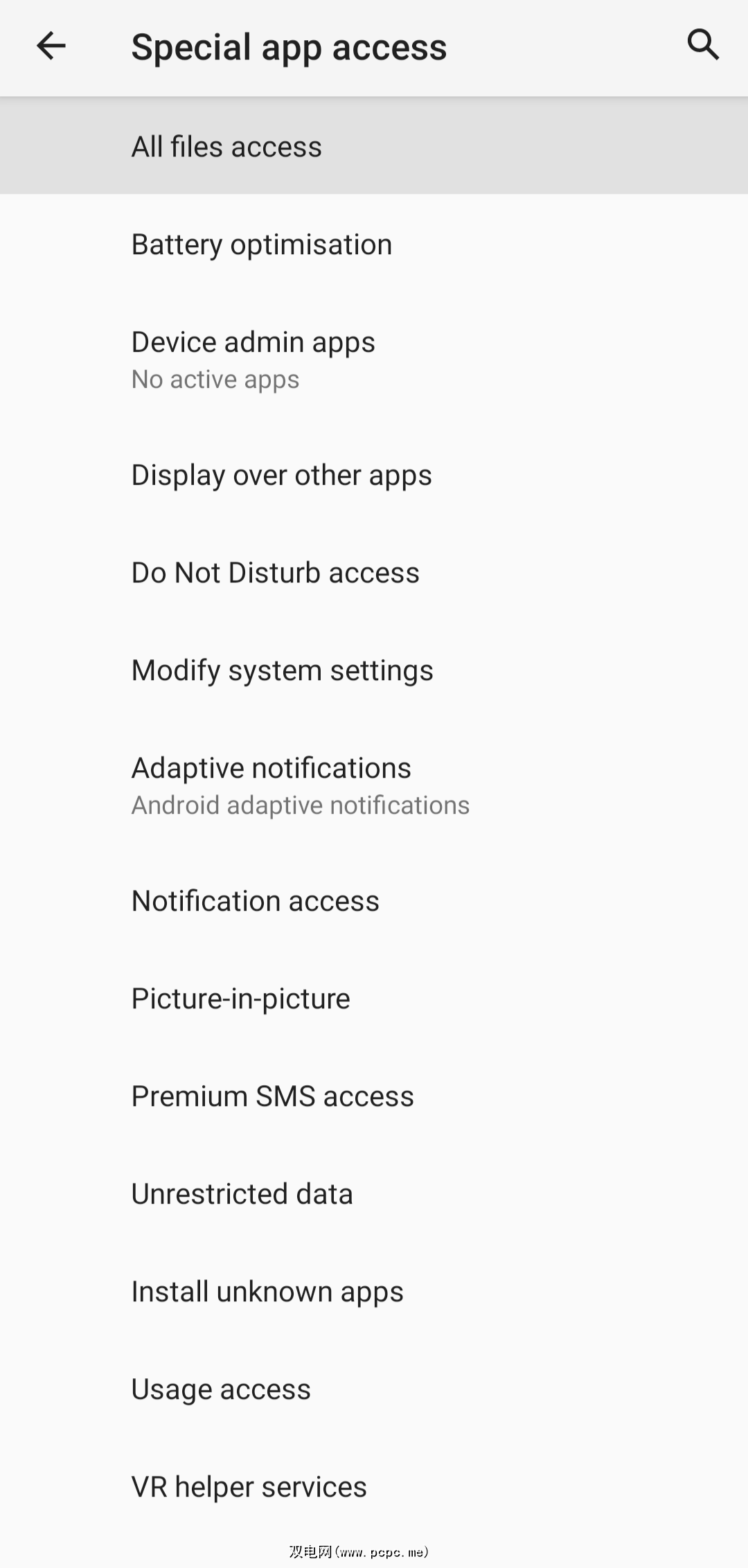 在您的应用程序和通知菜单中,有高级设置,然后是一个标题为特殊应用程序访问或类似内容的选项卡。在这里,您的应用程序按照它们在您手机上的权限进行细分。